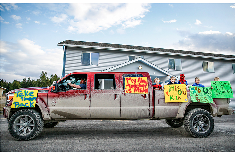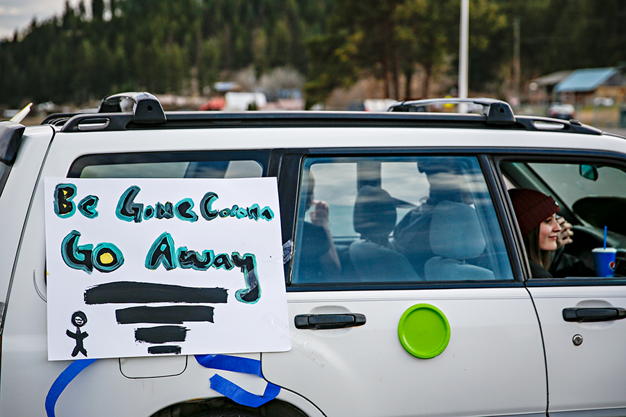 Kila School students, teachers and other community residents participated in a physically-distant car parade through town on April 10, 2020, as a way to connect during the COVID-19 outbreak. The Hunter D’Antuono | Flathead Beacon