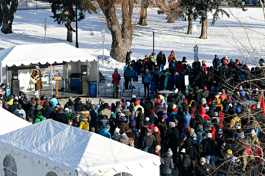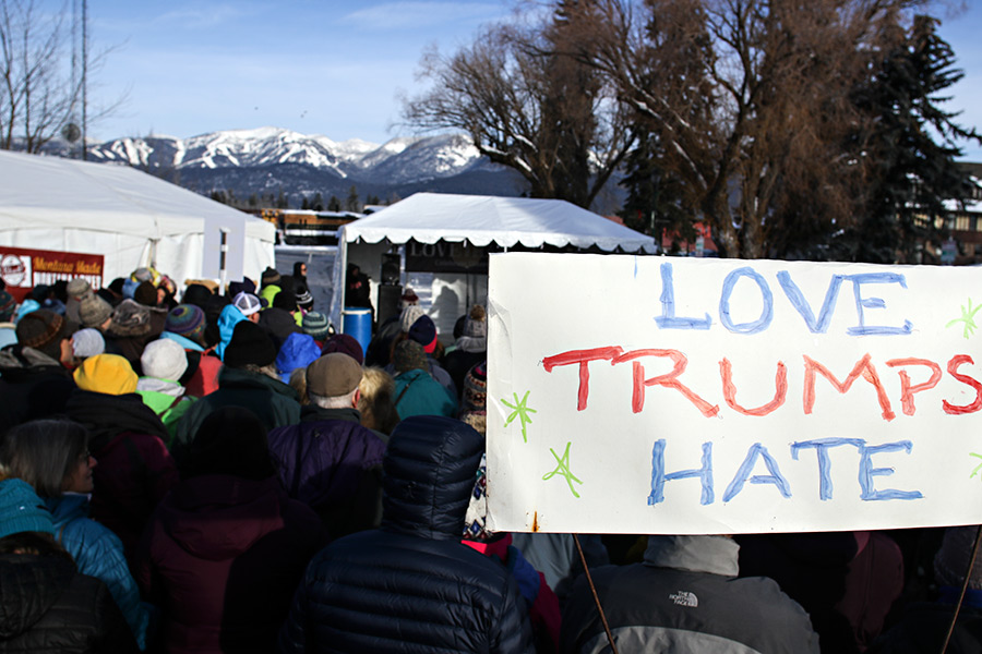 The Love Not Hate block party to celebrate diversity and take a stand against racism and other forms of oppression in downtown Whitefish on Jan. 7, 2017. Greg Lindstrom | Flathead Beacon