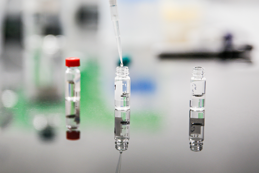 Samples are prepared with a pipette at Stillwater Laboratories on August 29, 2019. Stillwater Laboratories tests medical marijuana products from around the state of Montana at their state-of-the-art facility in a remote location north of Whitefish. Hunter D’Antuono | Flathead Beacon