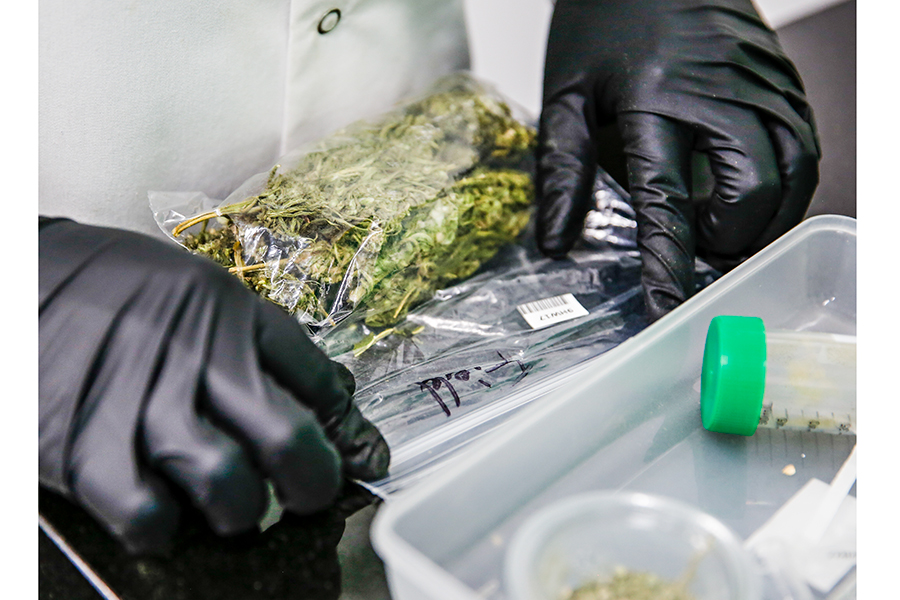 Laboratory Technician Michelle Huff opens a bag of marijuana flowers at Stillwater Laboratories on August 29, 2019. Stillwater Laboratories tests medical marijuana products from around the state of Montana at their state-of-the-art facility in a remote location north of Whitefish. Hunter D’Antuono | Flathead Beacon