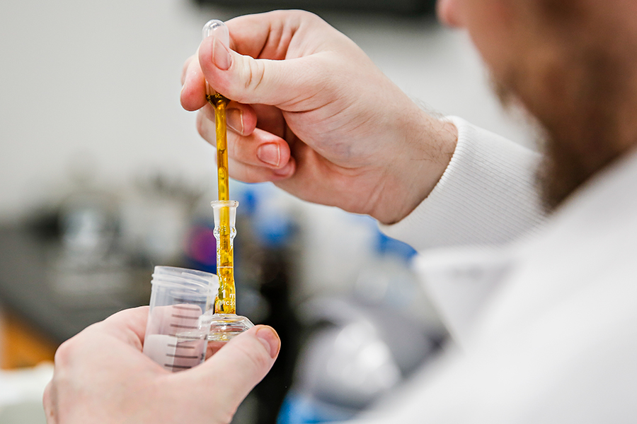 Senior Laboratory Technician works with a sample of cannabidiol, or CBD oil, at Stillwater Laboratories. Stillwater Laboratories tests medical marijuana products from around the state of Montana at their state-of-the-art facility in a remote location north of Whitefish, as seen on Aug. 29, 2019. Hunter D’Antuono | Flathead Beacon