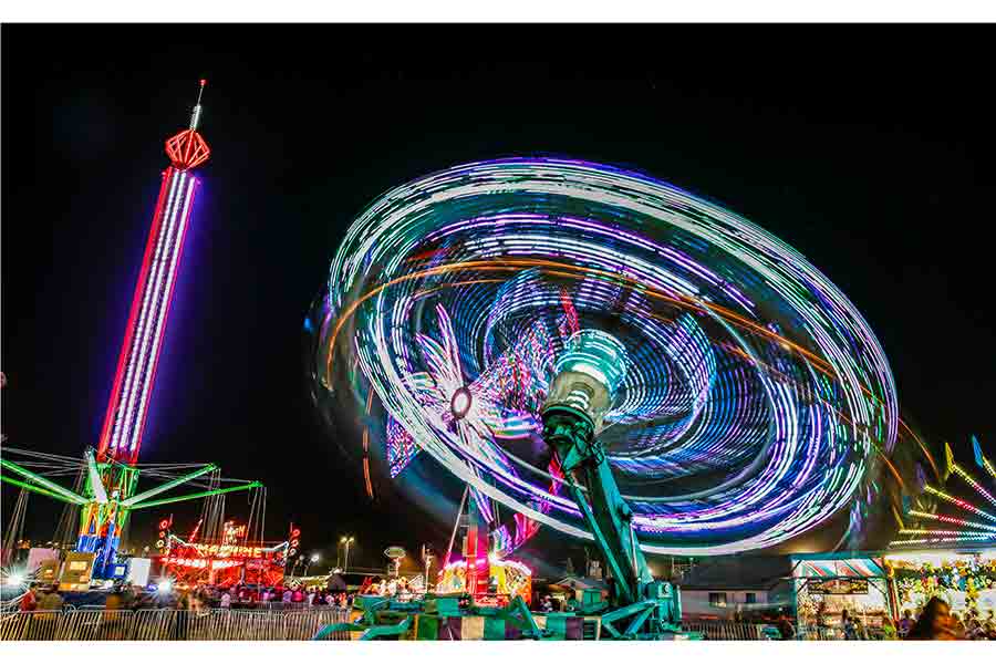 The carnival by night at the Northwest Montana Fair in Kalispell on August 15, 2019. Hunter D’Antuono | Flathead Beacon