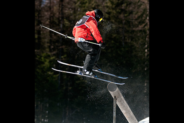 Jack Lam jumps off a rail at the Smoking Aces Freestyle Tour at Whitefish Mountain Resort on Feb. 28, 2015. More photos at flatheadbeacon.com. Greg Lindstrom | Flathead Beacon