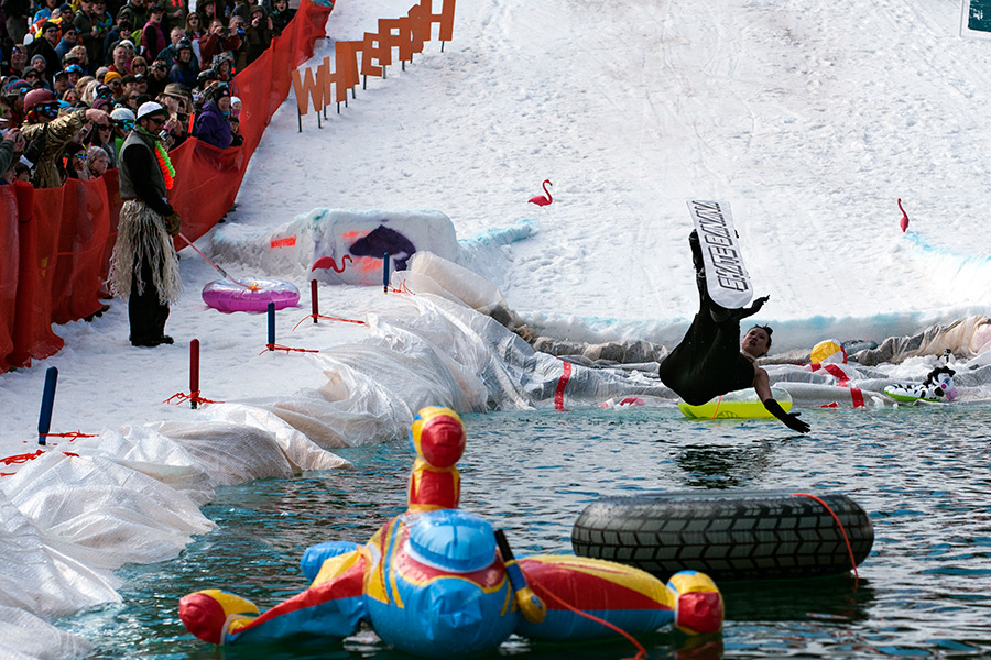 The 10th annual pond skim competition at Whitefish Mountain Resort on April 11, 2015. Greg Lindstrom | Flathead Beacon