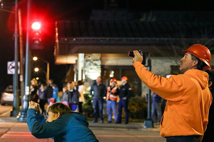 Bystanders snap pictures of the demolition of Whitefish City Hall on Oct. 27, 2015. Greg Lindstrom | Flathead Beacon