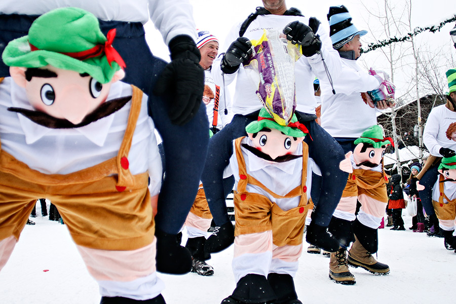 John Chicowitz leads a group at the Whitefish Winter Carnival LVIII Grand Parade on Feb. 4, 2017. Greg Lindstrom | Flathead Beacon