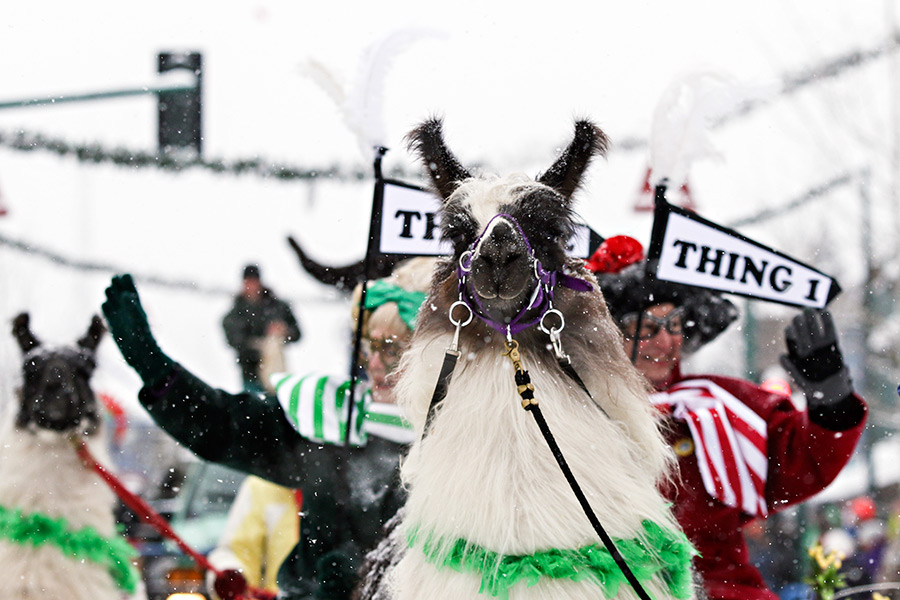 Katoya the llama walks in the Whitefish Winter Carnival LVIII Grand Parade on Feb. 4, 2017. Greg Lindstrom | Flathead Beacon