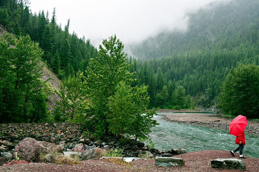 Colorful rain gear stands out from a soggy scene along the Middle Fork Flathead River near Marias Pass on July 20, 2014. Greg Lindstrom | Flathead Beacon