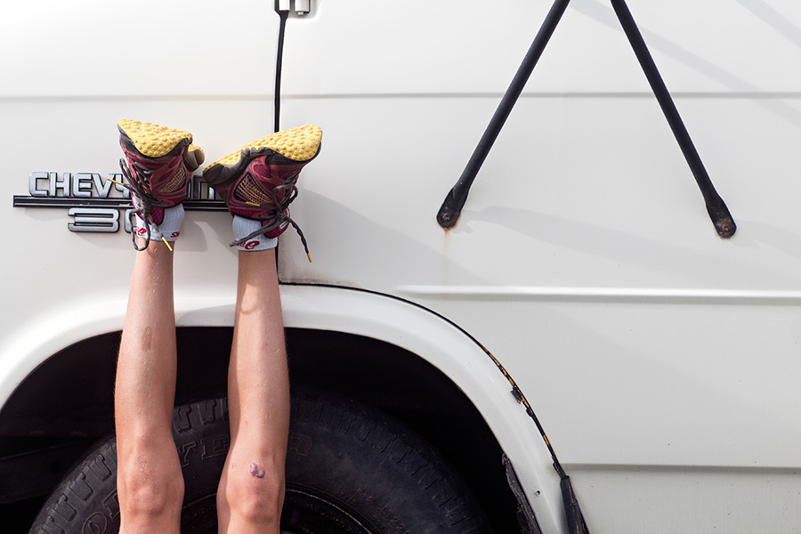 A runner rests his legs after the race. The MHSA cross country championships at Bill Roberts Golf Course in Helena on Oct. 25, 2014. Greg Lindstrom | Flathead Beacon