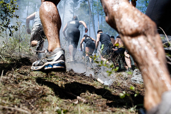 Racers charge up a hill through a smoke cloud at the start of the second annual Montana Spartan Sprint on Saturday, May 10, 2014. Greg Lindstrom | Flathead Beacon