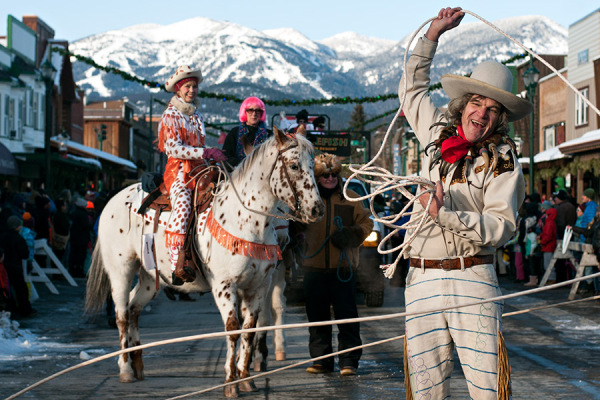 Jack Fairchild performs rope tricks during the parade at the 55th annual Whitefish Winter Carnival on Saturday, Feb. 8, 2014. Greg Lindstrom | Flathead Beacon