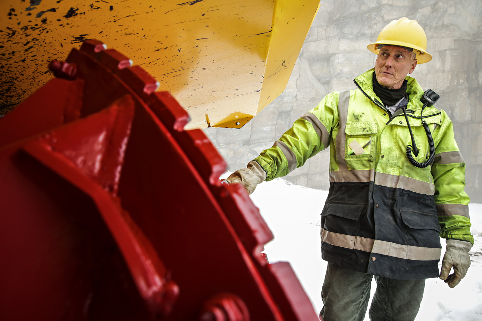 Heavy equipment operator Mike Hudson stands by the auger of a snow blower parked along Going-to-the-Sun Road in Glacier National Park on April 24, 2023. Hunter D’Antuono | Flathead Beacon