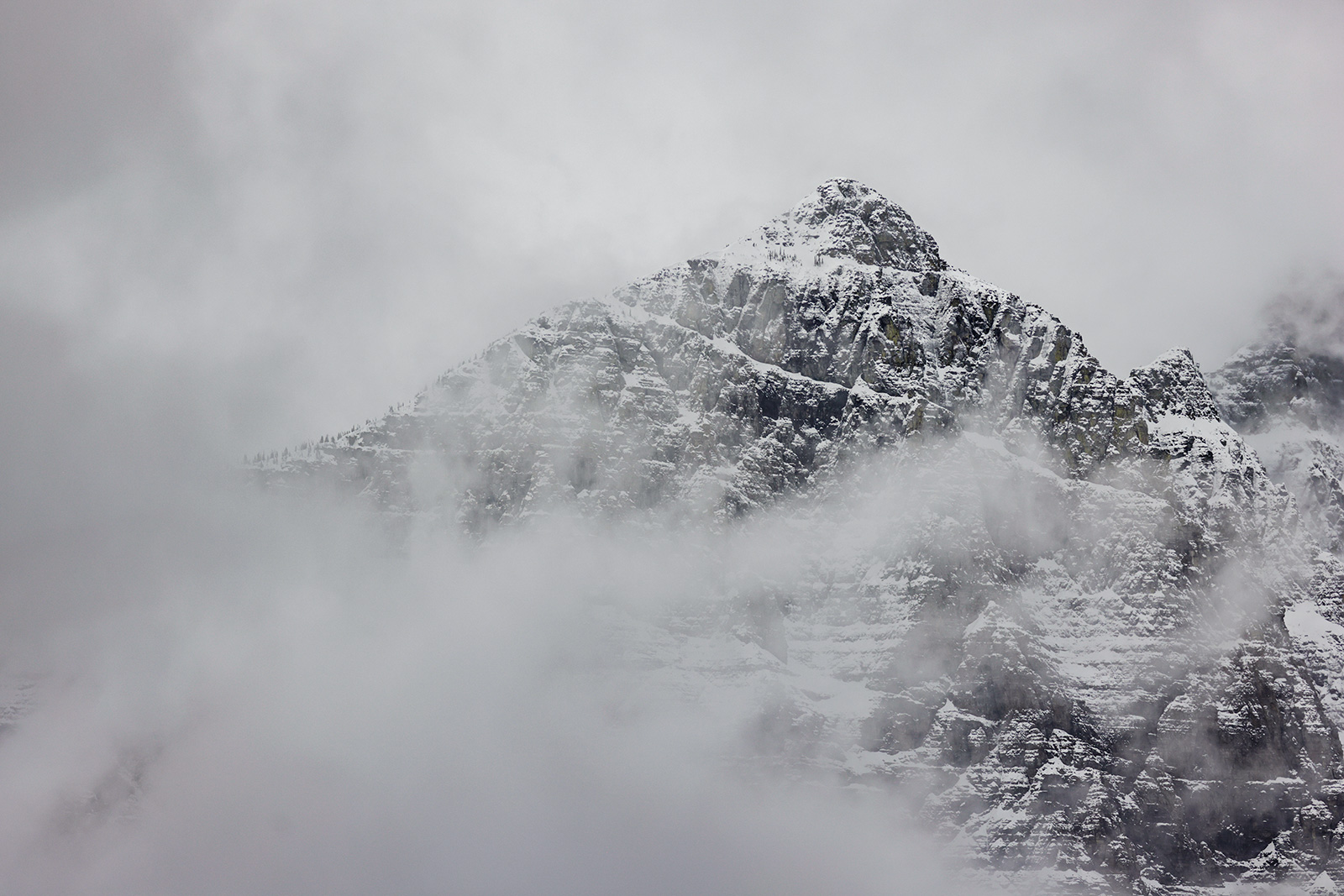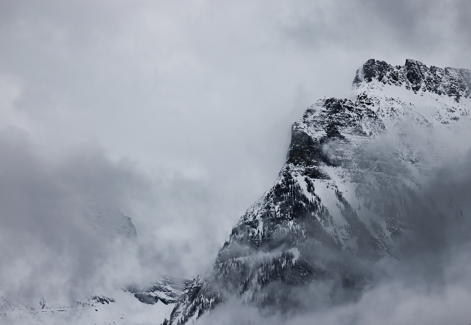 Clouds envelop mountain ridges as viewed from Going-to-the-Sun Road in Glacier National Park on April 24, 2023. Hunter D’Antuono | Flathead Beacon