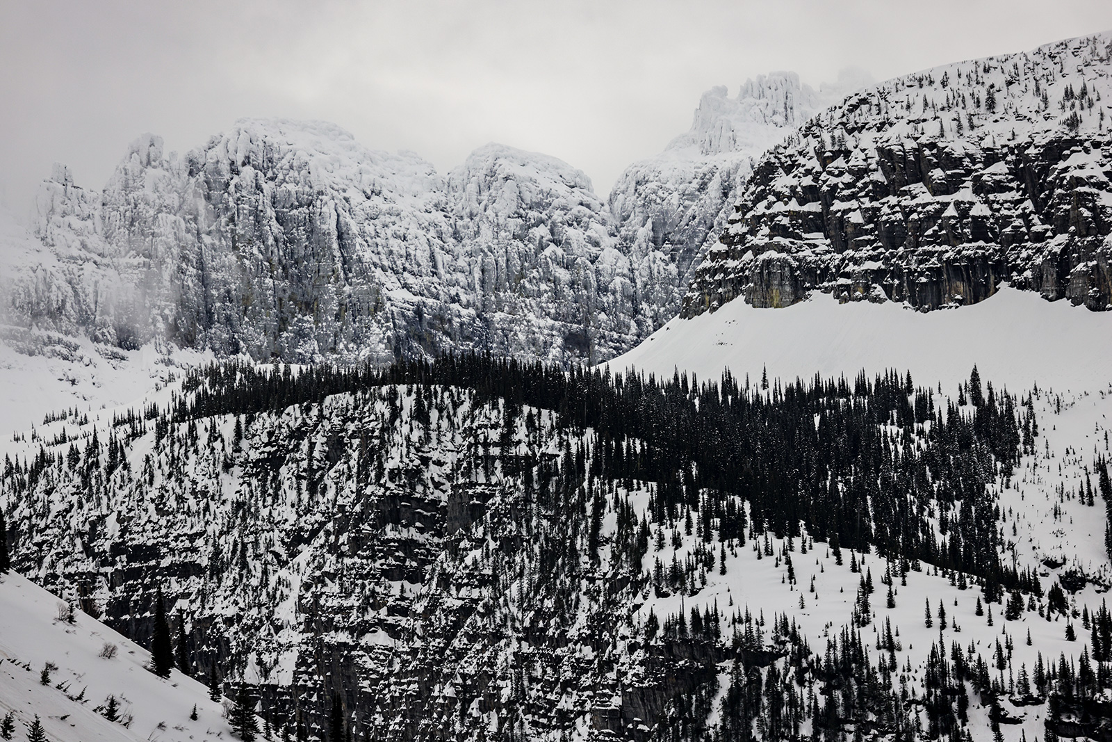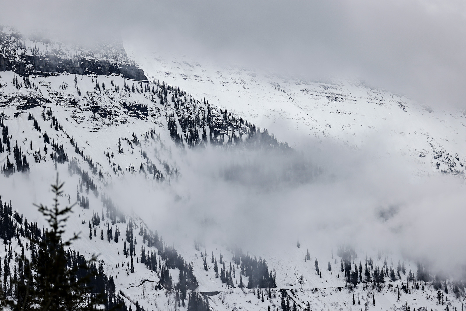 Heavy clouds drift over Going-to-the-Sun Road in Glacier National Park on April 24, 2023. Hunter D’Antuono | Flathead Beacon