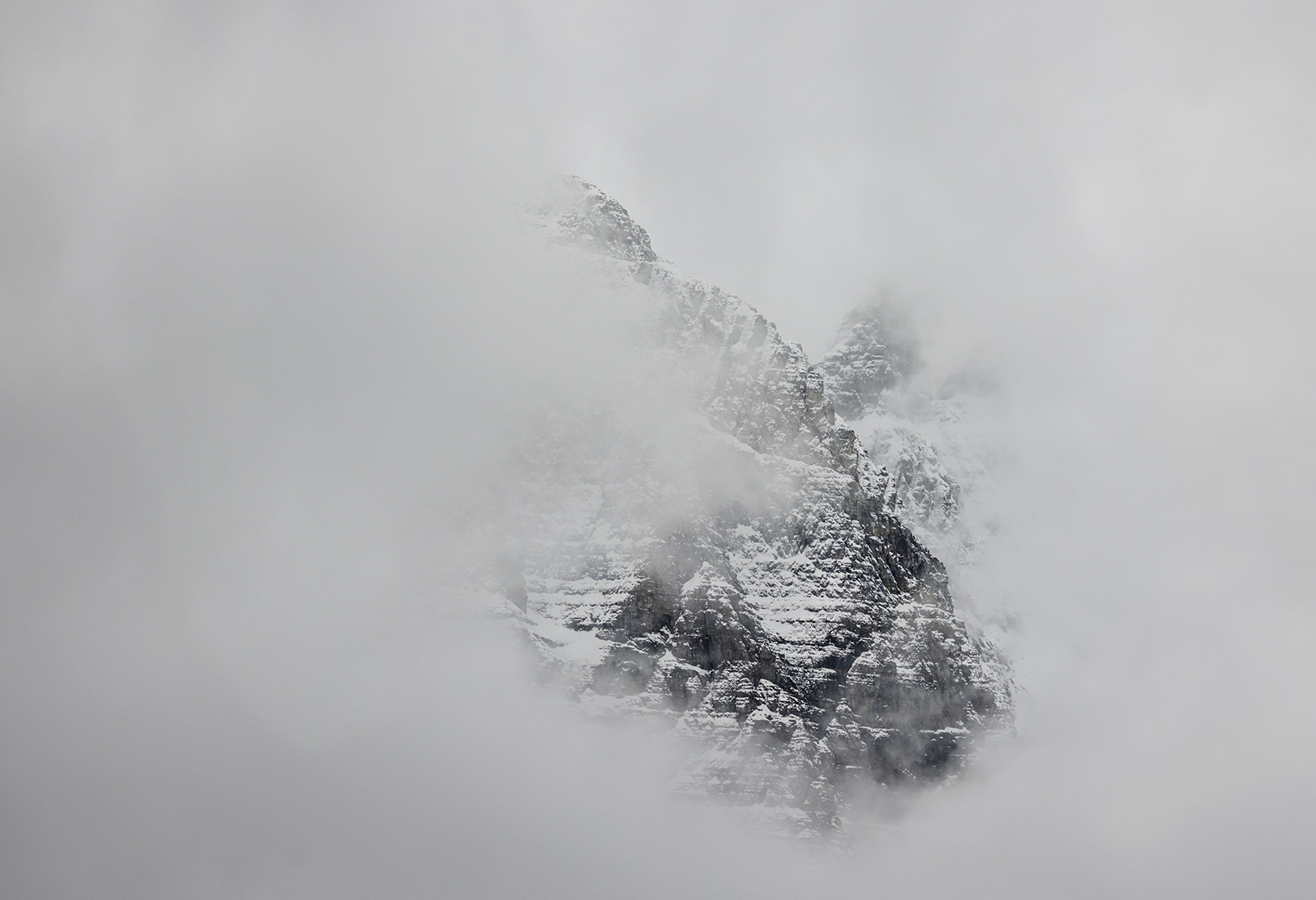 Clouds envelop mountain ridges in Glacier National Park as viewed from Going-to-the-Sun Road in Glacier National Park on April 24, 2023. Hunter D’Antuono | Flathead Beacon