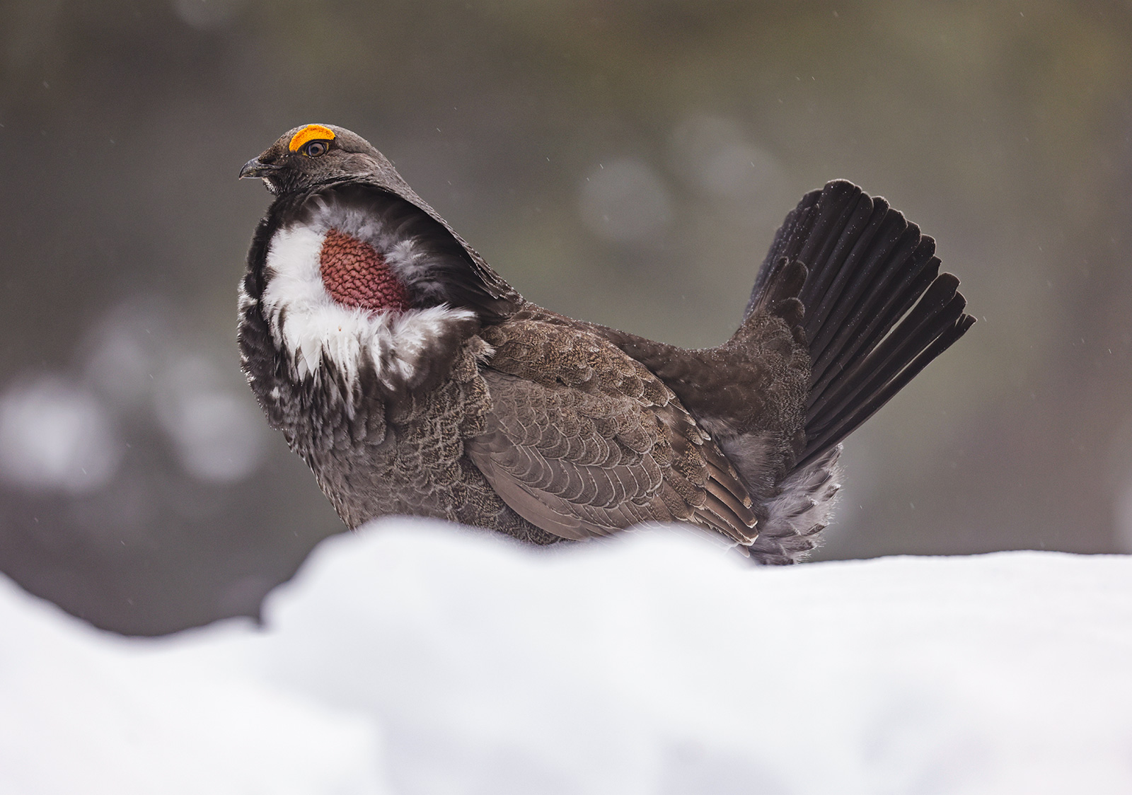 A dusky grouse perches on a mound of snow along Going-to-the-Sun Road in Glacier National Park on April 24, 2023. Hunter D’Antuono | Flathead Beacon