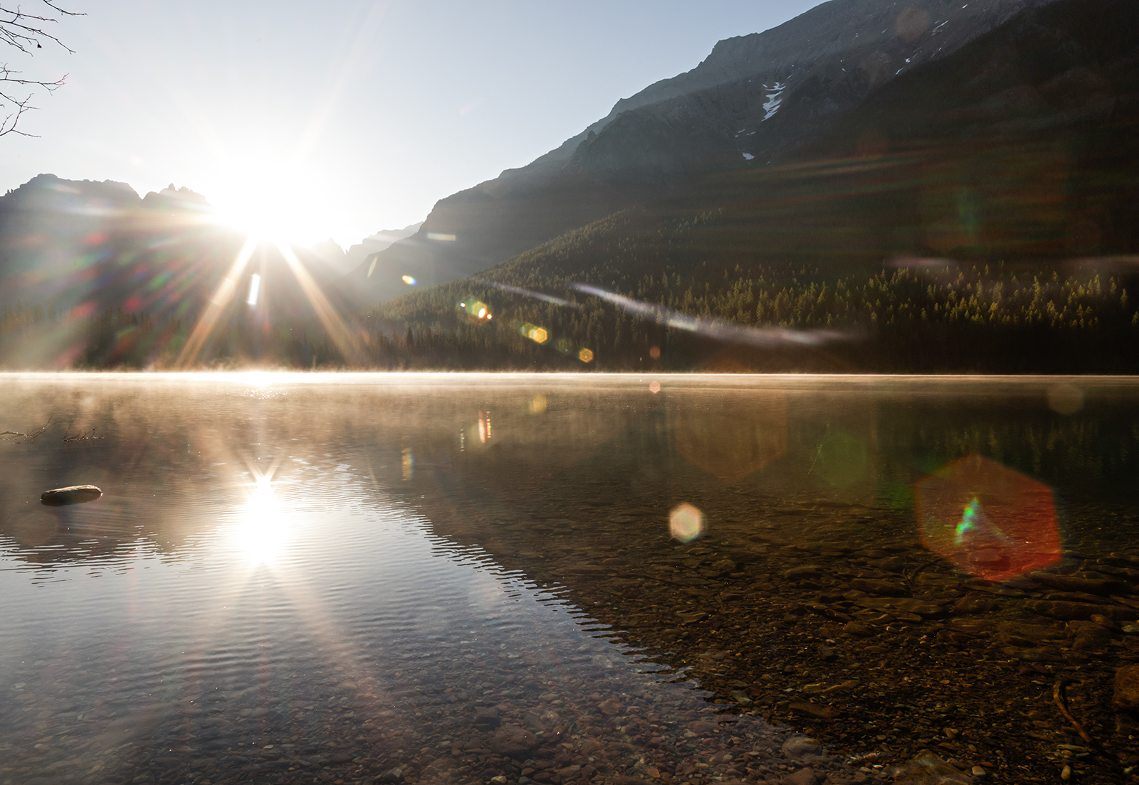 Sunrise over Thunderhead Mountain and Bowman Lake on July 8, 2025. Hunter D’Antuono | Flathead Beacon