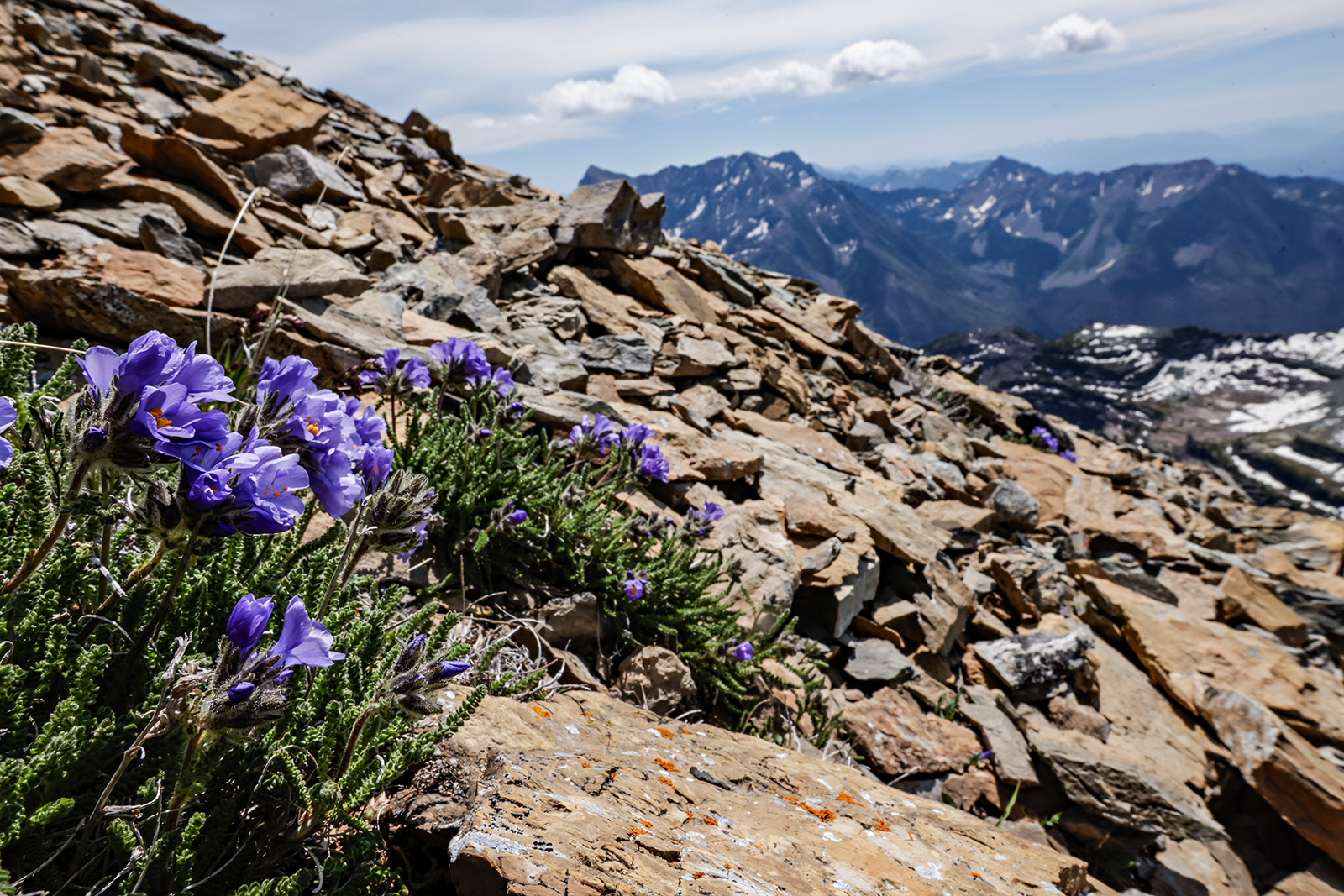 Sky pilot blossoms on the slopes of Rainbow Peak in Glacier National Park on July 8, 2025. Hunter D’Antuono | Flathead Beacon