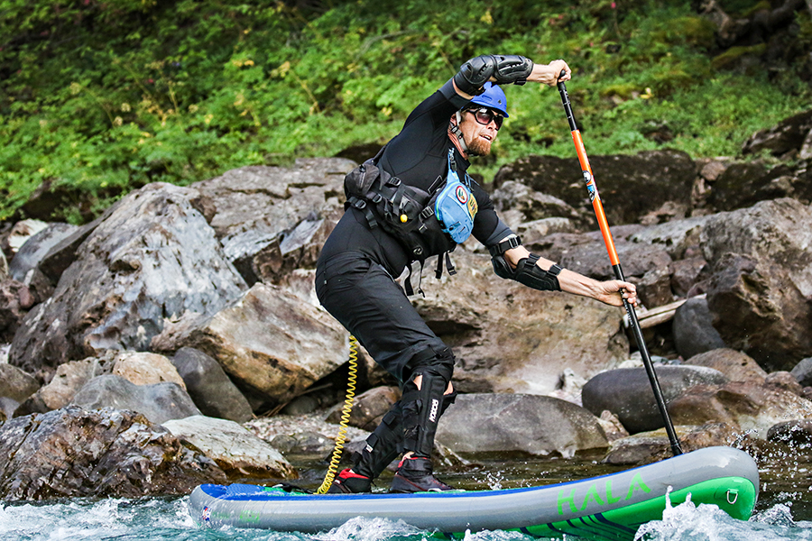 Paddle boarder Jimmy Reed of Whitefish poses for a portrait with his board on the Middle Fork of the Flathead River near Belton Bridge in West Glacier on Sept. 5, 2019. Hunter D’Antuono | Flathead Beacon