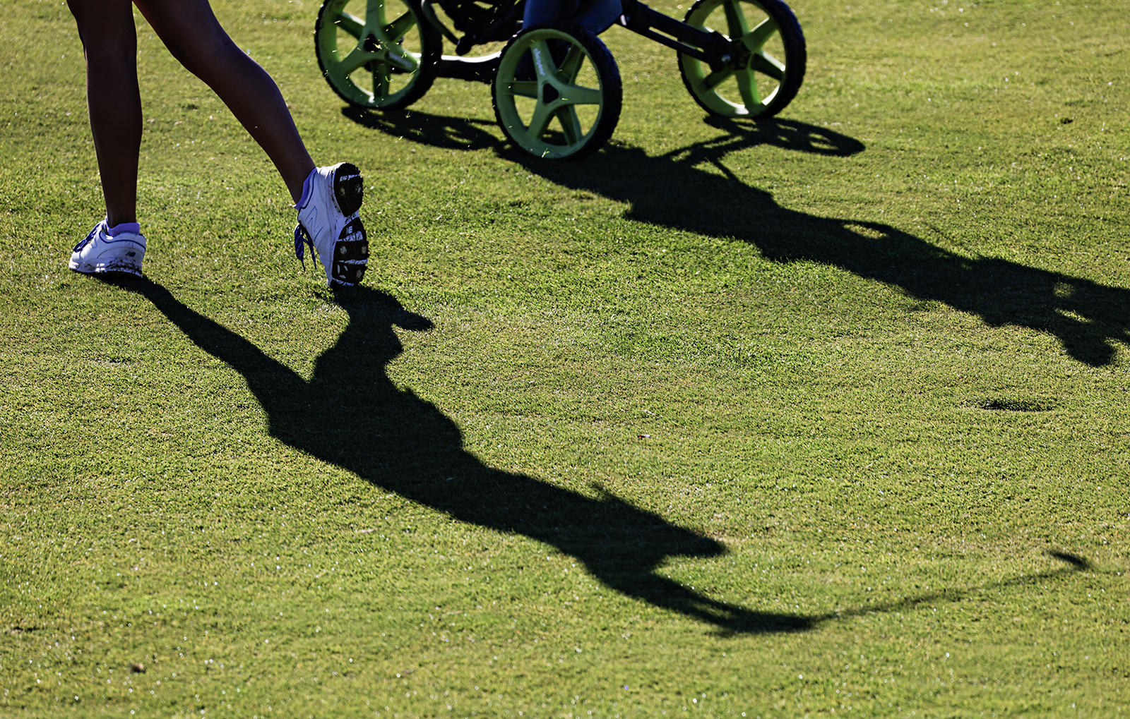 Shadow of a golfer at the Class AA State Golf Tournament at Northern Pines Golf Club in Kalispell on Oct. 3, 2024. Hunter D’Antuono | Flathead Beacon