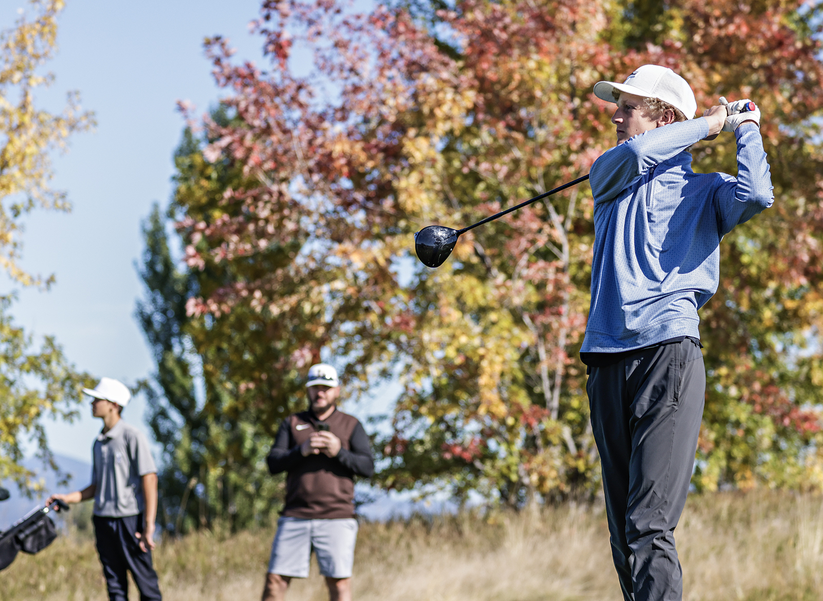 Sam Engellant of Glacier High School tees off during the Class AA State Golf Tournament at Northern Pines Golf Club in Kalispell on Oct. 3, 2024. Hunter D’Antuono | Flathead Beacon