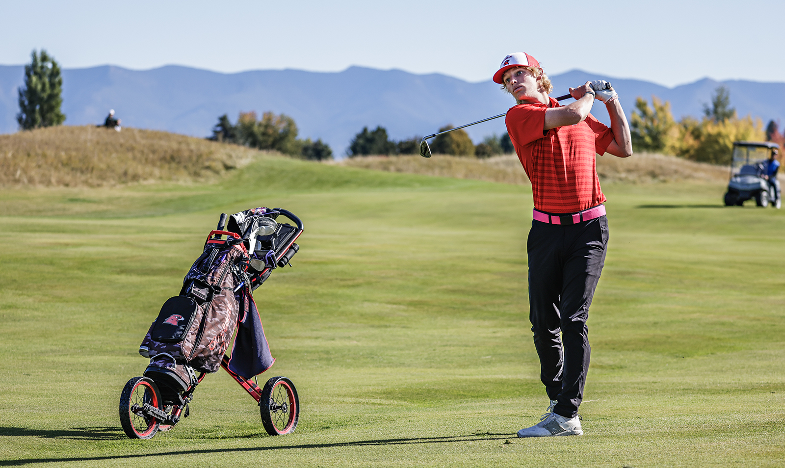 Jayce Belzer of Capital High School competes in the Class AA State Golf Tournament at Northern Pines Golf Club in Kalispell on Oct. 3, 2024. Hunter D’Antuono | Flathead Beacon