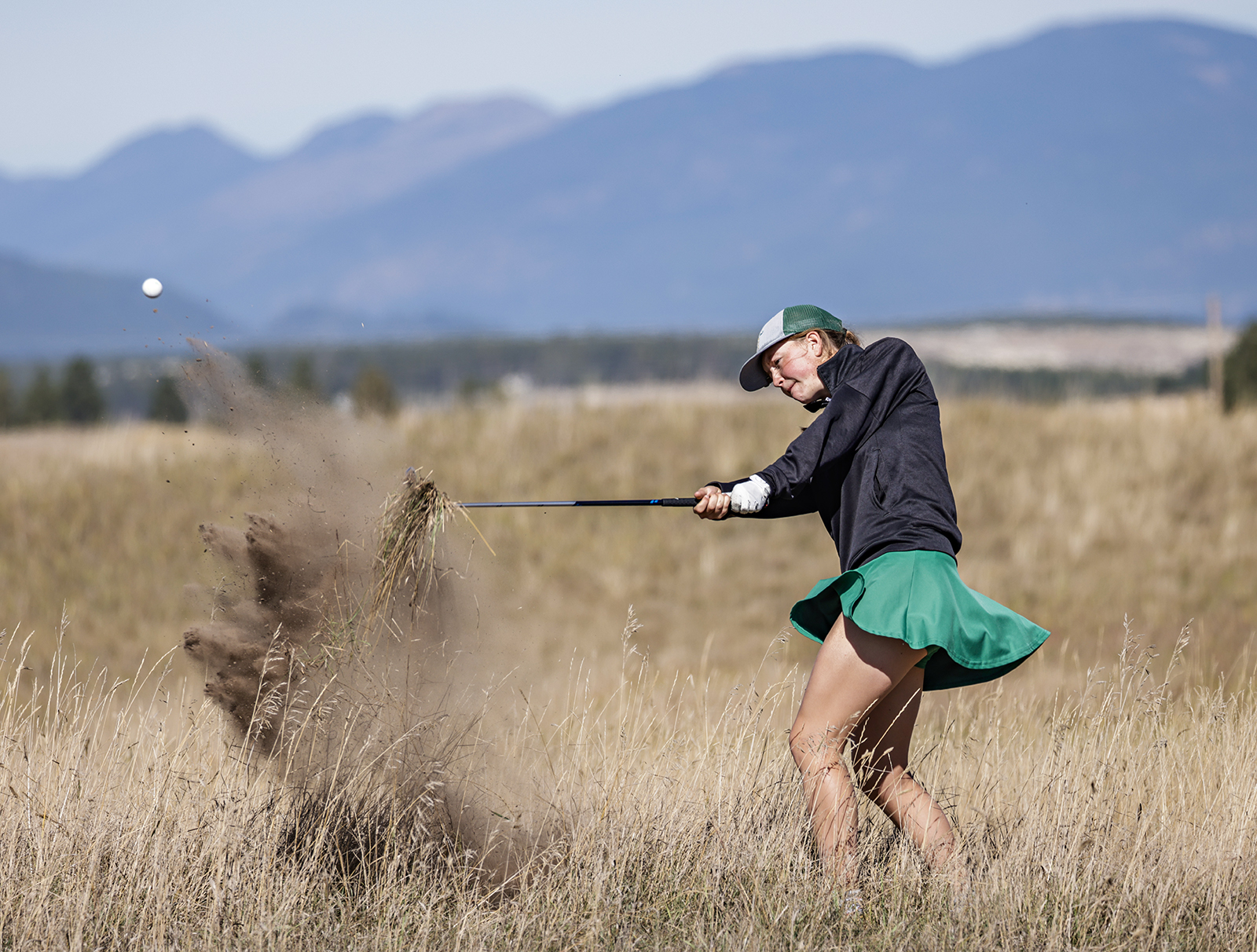Quincy Weymouth sends her ball out of the rough during the Class AA State Golf Tournament at Northern Pines Golf Club in Kalispell on Oct. 3, 2024. Hunter D’Antuono | Flathead Beacon