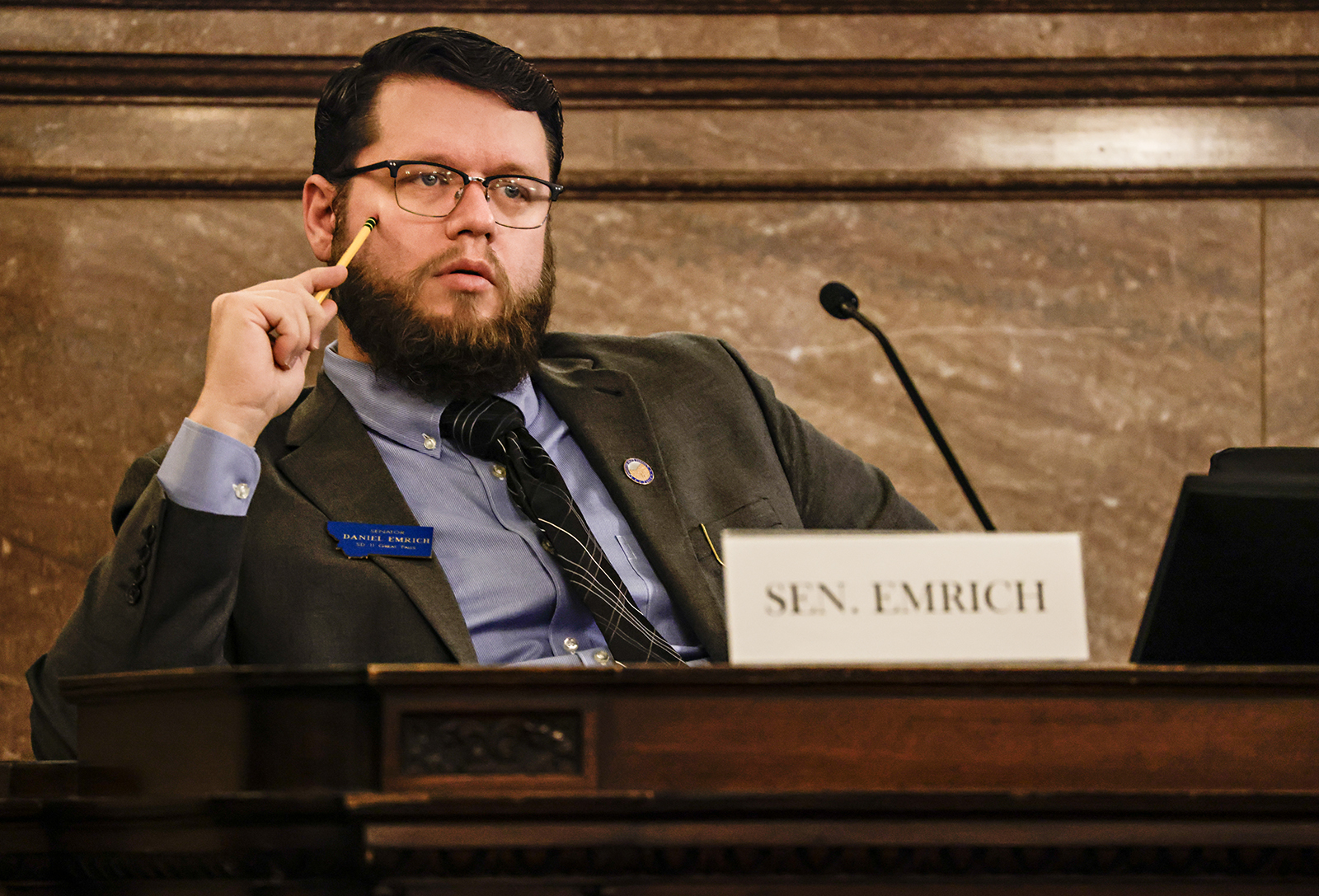 Sen. Daniel Emrich attends a Senate Judiciary Committee hearing in The Capitol in Helena, Jan. 16, 2025. Hunter D’Antuono | Flathead Beacon