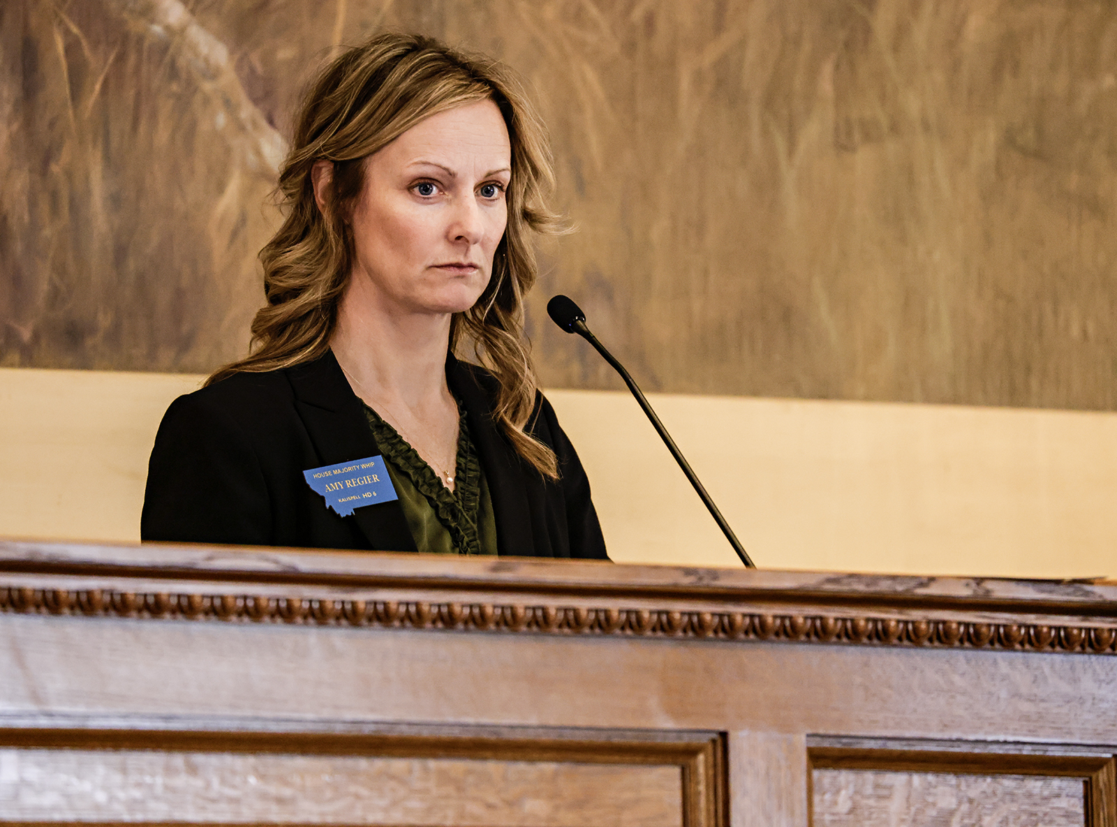 House Majority Whip Amy Reiger presides over the House Floor in the Capitol in on Helena on Jan. 16, 2025. Hunter D’Antuono | Flathead Beacon