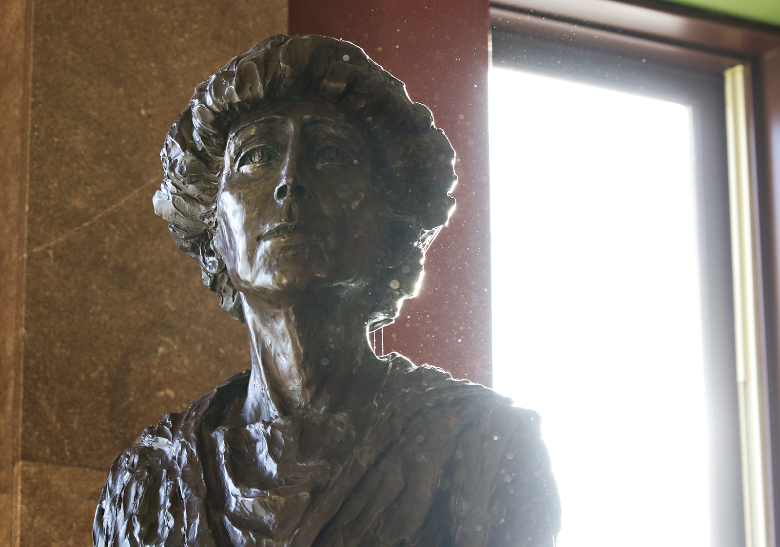 Motes of dust swirl through a sunbeam around a statue of Montana politician Jeannette Rankin , the first woman elected to the U.S. Congress, in The Capitol in Helena on Jan. 16, 2025. Hunter D’Antuono | Flathead Beacon