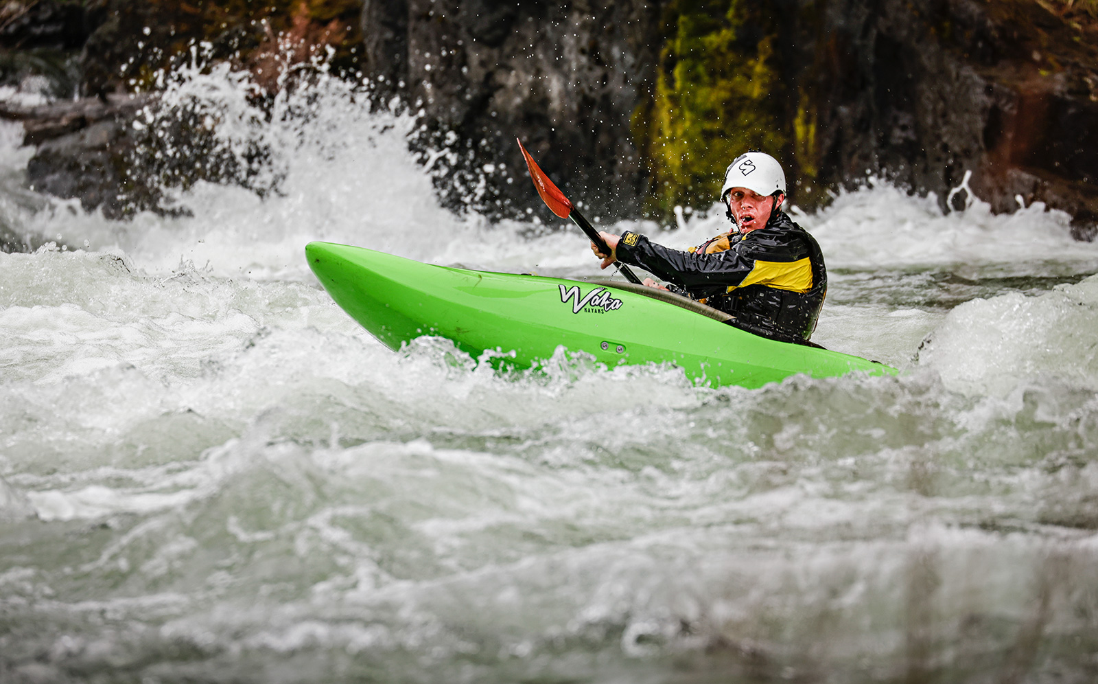 A kayaker competes in the Expert Slalom on the Swan River during the 47th annual Bigfork Whitewater Festival in Bigfork on May 28, 2022. Hunter D’Antuono | Flathead Beacon