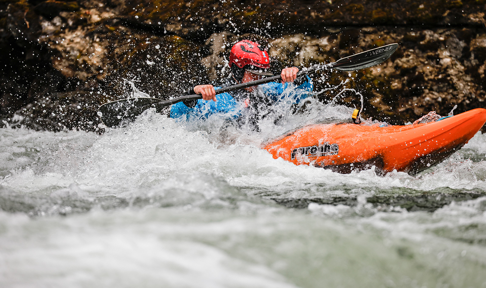 A kayaker competes in the Expert Slalom event in the rapids of the Swan River for the 47th annual The Bigfork Whitewater Festival on May 28, 2022. Hunter D’Antuono | Flathead Beacon