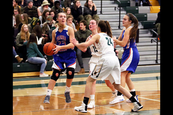 Ryley Kehr throws the ball during the crosstown game on Jan. 10, 2019 in Whitefish. The Columbia Falls girls beat Whitefish 61-27. Justin Franz | Flathead Beacon
