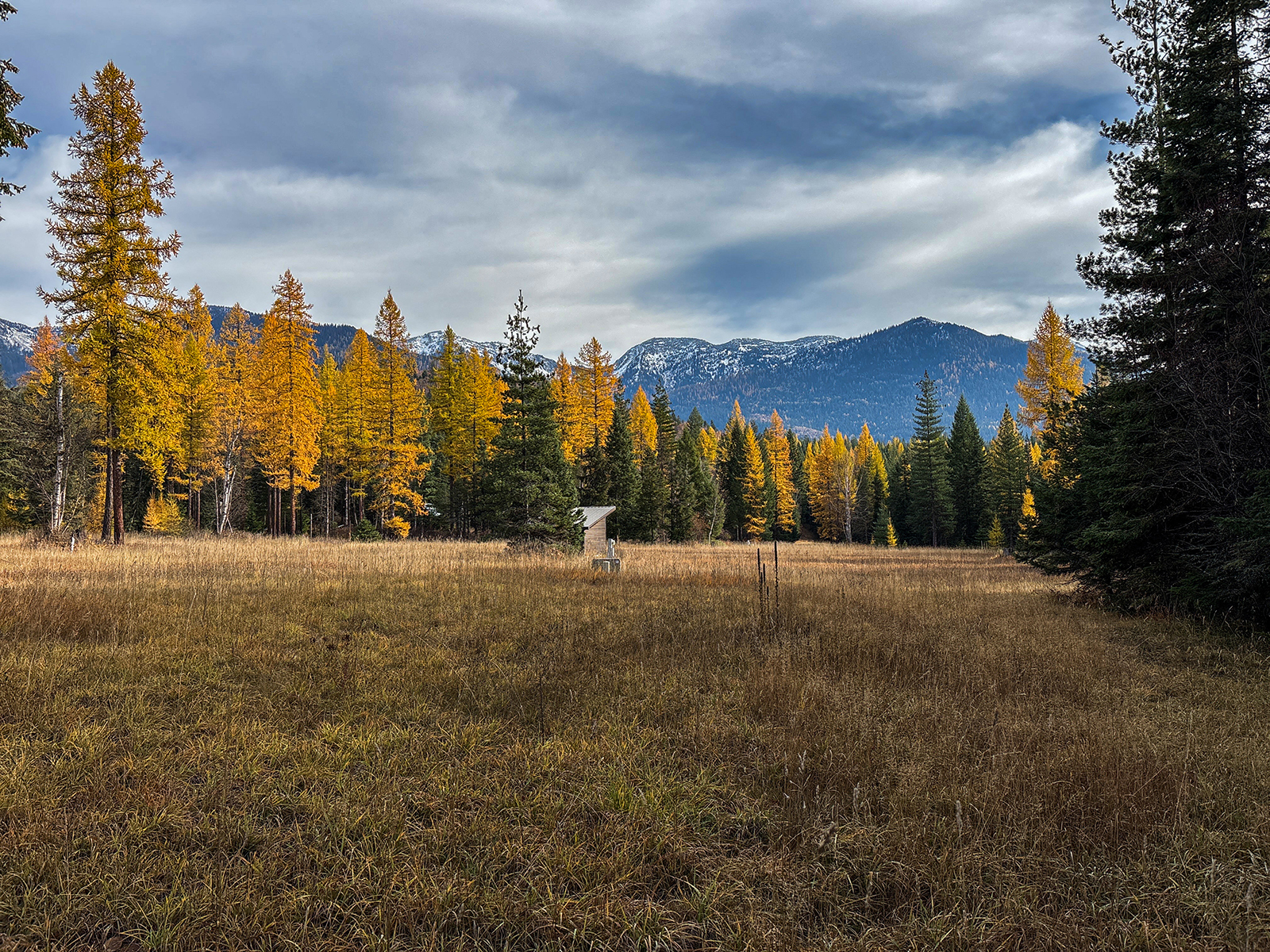 The property includes a small, unoccupied cabin and several rustic structures, including a shed once used as a secluded writing studio. The parcel transitions from a large open meadow to mixed coniferous forests of western hemlock, white pine, and grand fir. Interspersed with seasonal wetlands, it features a vernal pond and a mix of forests and grasslands, providing high-quality habitat for grizzly bears, moose, and deer.