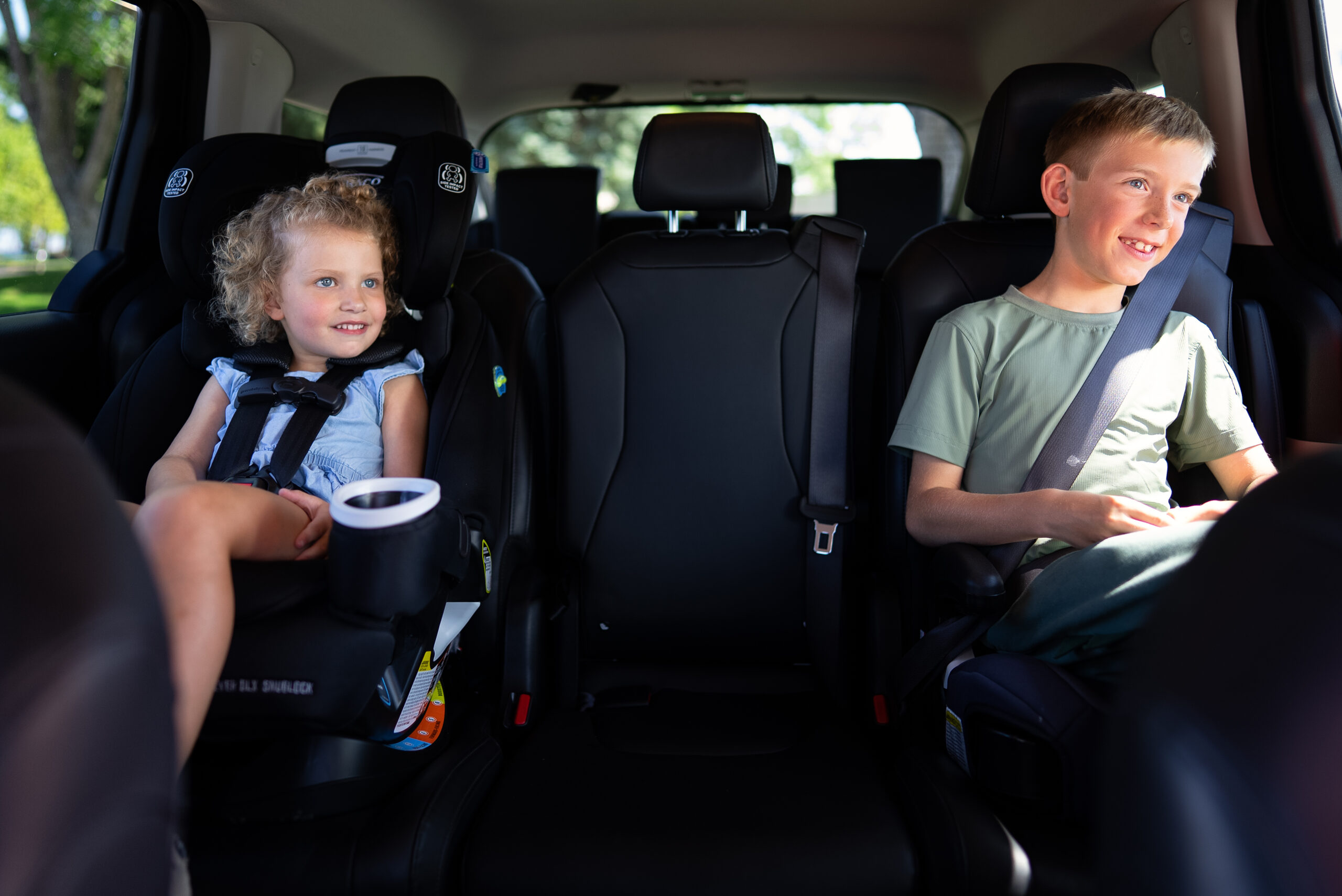 Children under the age of 2 must ride in a rear-facing car seat; kids ages 2 to 4 can use a rear or a forward-facing car seat with a harness, though it’s recommended to keep children rear-facing as long as possible. Those age 4 to 8 are required to use a forward-facing seat with a harness or a booster seat, based on their size. Finally, once you’ve turned 9, or you’ve outgrown the booster, you’re allowed to level up to an adult seat belt – on the condition that it fits you correctly.